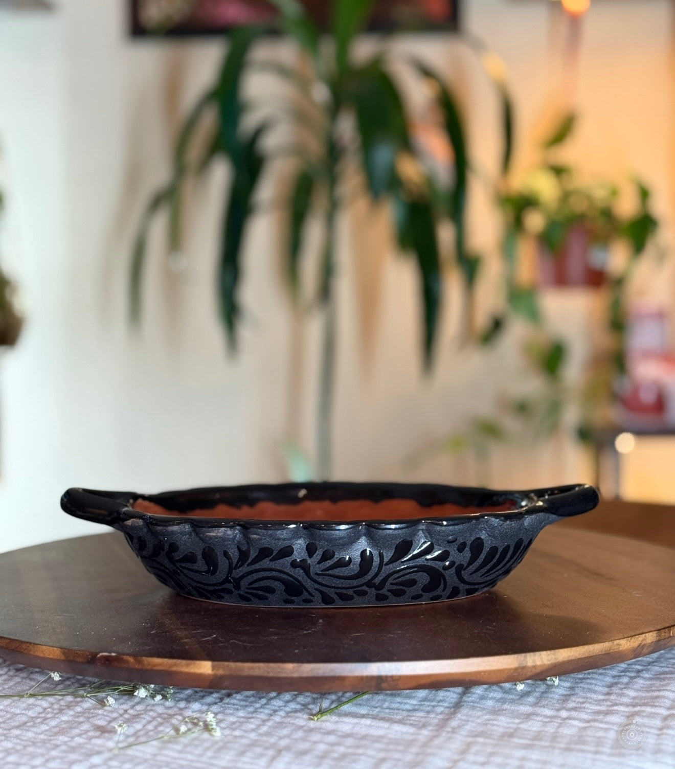 A handcrafted ceramic dish designed for serving soft or melted cheeses. Perfect for table presentation—rustic, functional, and full of character. Not intended for oven use.